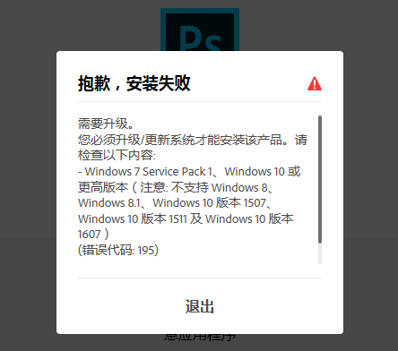 您必须升级/更新系统才能安装该产品。请检查以下内容Windows 7 Service Pack 1、Windows10或更高版本(注意:不支持Windows 8、Windows 8.1、Windows 10版本1507、Windows 10版本1511及Windows10版本1607)(错误代码:195)