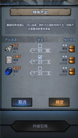升级堡垒材料,优先产出大理石,需要高力量工人