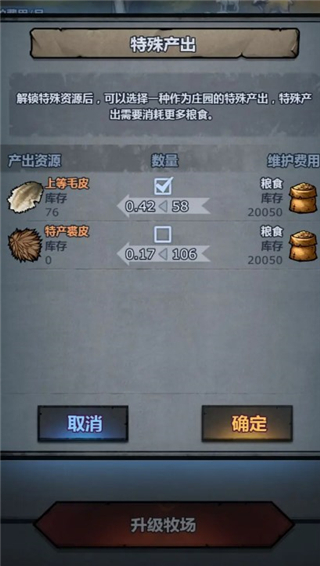 产出可以用来卖钱,优先级不高,卖钱推荐上等毛皮,需要高感知工人