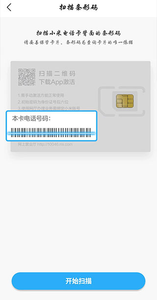 扫描手机卡背部的条形码