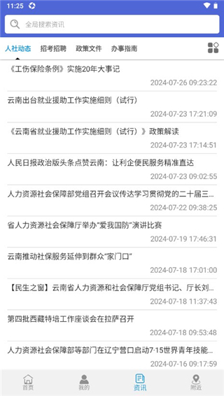 3、另外客户端上还可以查询和了解云南省人力资源社会保障的相关政策。