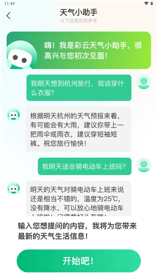 彩云天气是一款非常实用的天气预报软件,这里面提供了各个地区详细的天气情况,温度、体感、风力、温度、湿度等等,甚至还详细到了几时几分会下雨,当有恶劣天气时,还会及时推送信息,暴雨、冰雹、台风、洪水、烈日等等,避免你遇到淋雨等情况,可以说是非常的人性化了,而且彩云天气内不仅提供了当天的天气,还将近两周的情况进行了预测,不过时间比较靠后的话,天气预报不会特别准,不过近三天的天气是没有问题的,准确性还是相对比较高,同时软件内还提供了天气小助手,当你要出去游玩时,用户还可以询问其他地区的天气情况,避免前往的时候遇到恶劣天气,导致无法好好的进行游玩。