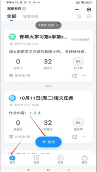 1、作业支持视频,语音,拍照签字反馈,语音评论;2、发布的作业或者通知,可以统计每个学生完成情况;