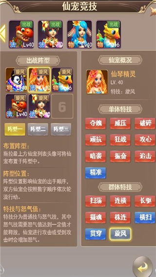 在决战之前,还是先要把你们的宝贝仙宠排好阵型。和幻兽天境一样,这里仙宠的排位,以及技能的选择至关重要!而问题的关键是我们面对的已经不是恒久不变的电脑,而是一个个会思考布局的仙友!成败与否,就在于你上阵什么仙宠,以及如何摆弄阵型和技能。