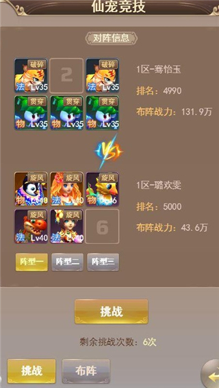 值得一提的是,作为进攻方我们是可以看到你选择的对手的仙宠、排位和技能的。这就是一个机会,让你通过制造出克制对手的布局去战胜对手!这可是战力与策略的最高挑战!用我们最爱的仙宠,去迎接最强大的对手,若胜利了那份满足感可是无可比拟的!这就是让人又爱又恨的仙宠竞技场!不过注意每天只能挑战6次仙宠竞技噢,若想继续需要通过购买次数实现。