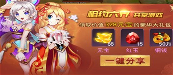 分享游戏,通过“分享”按钮进去一键分享,不仅可以把好游戏分享给自己的朋友,同时还有元宝收入。何乐而不为呢。