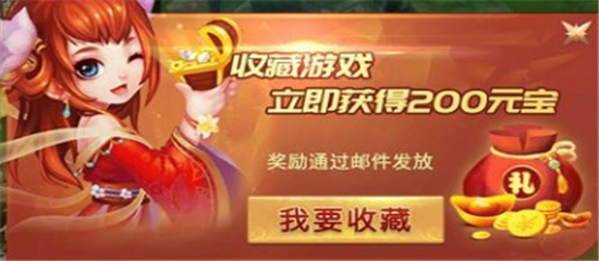 收藏游戏,把游戏放在桌面,下次就可以快速进入游戏了,非常的方便。同时还有200元宝的奖励,是非常划算的功能。