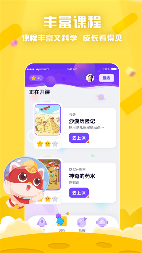1、这里有着众多优质课程,可以让孩子放心学习。2、用户可以运用学到的知识,创造属于自己的作品。