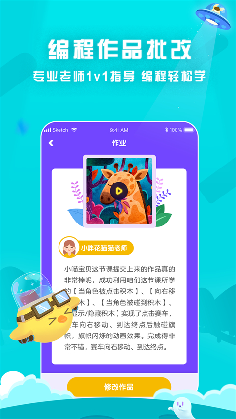 当然了,探月校园版app中除了课程外,用户还可以与辅导老师在线互动,询问一些不明白的地方,老师会迅速为大家解答,另外,软件中还内置了作品板块,你能根据自己所学习的知识来创作各种作品,巩固在课堂中学习的知识,作品一旦创建成功后,用户可以随时对其进行修改,甚至还能分享给你的小伙伴一起体验哦。