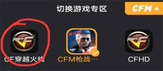 2、点击cfm,会弹出切换菜单,玩家点击CF即可进行端游和手游的切换。