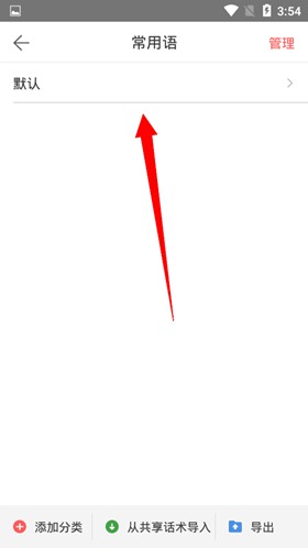 3、点完默认栏目之后,再选一下“添加常用语”这个选项。