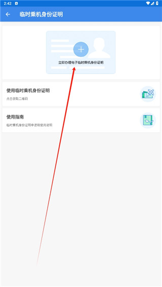 3、接着就会看到“立即办理电子临时乘机身份证明”的按钮。