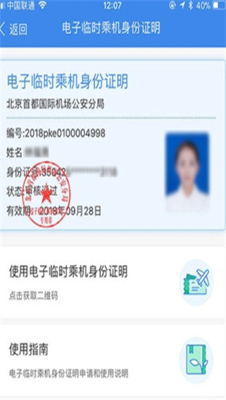5、提交完之后就等着工作人员审核呗。等审核通过了,你再点进去,就能看到自己的电子临时乘机身份证明啦。
