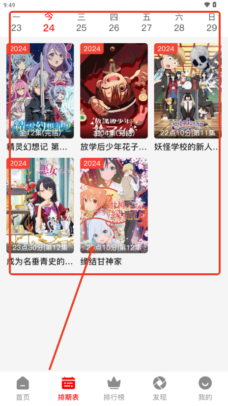 3、要是想知道每天有啥新动漫,就瞅瞅那个排期表,一目了然。