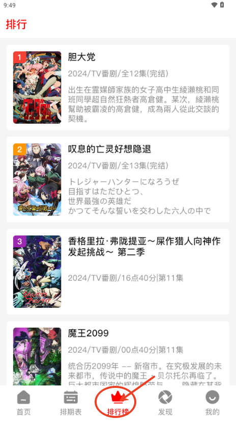 4、或者看看排行榜,上面都是最近热门的动漫,找新资源就靠它啦!