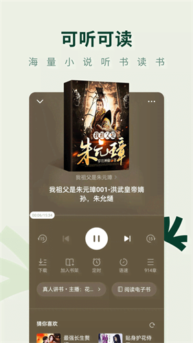 3、这里有听书服务,让你阅读的时候,眼睛也能随时休息一下。