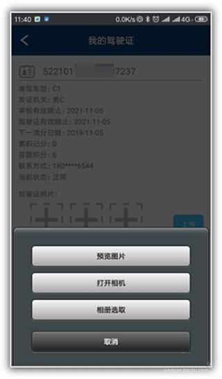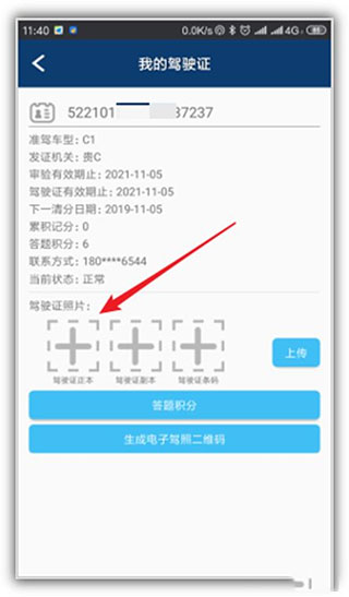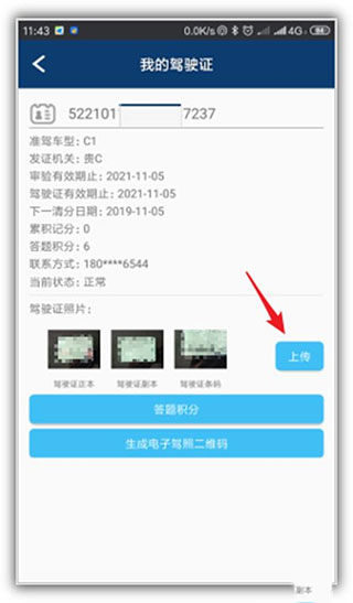 9、加好照片后,回到“我的驾驶证”页面,点个“上传”。