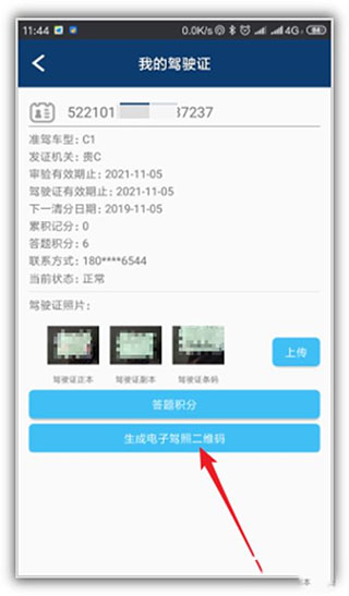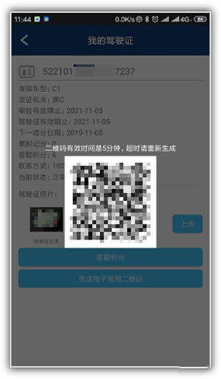10、上传成功后,就可以点个“生成电子驾照二维码”了。