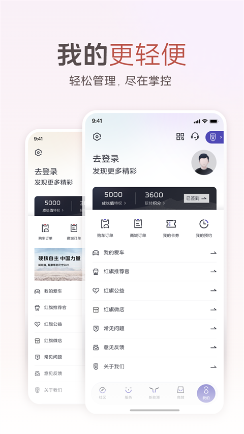 5、只有红旗车主才能用,享受专属的智能用车体验。