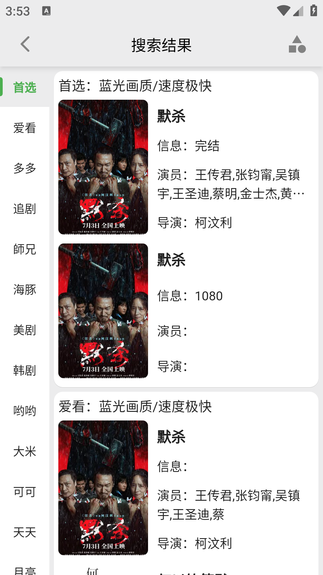 3、搜完之后,会看到好多个播放源,选第一个就行啦。