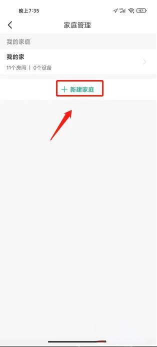 2、进到家庭管理里面后,你会看到一个“新建家庭”的按钮,快点一下它。