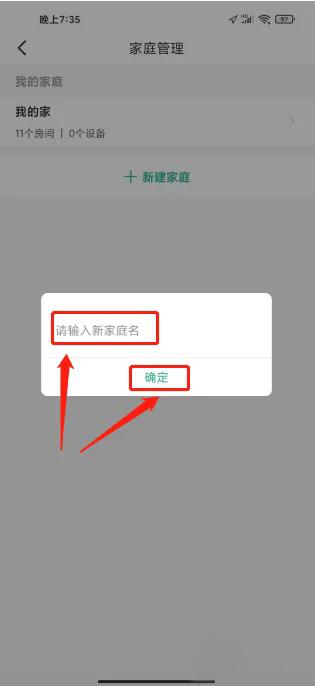 3、这时候会弹出一个小窗口,你在里面输入想给新家庭起的名字,然后点“确定”就完成了。
