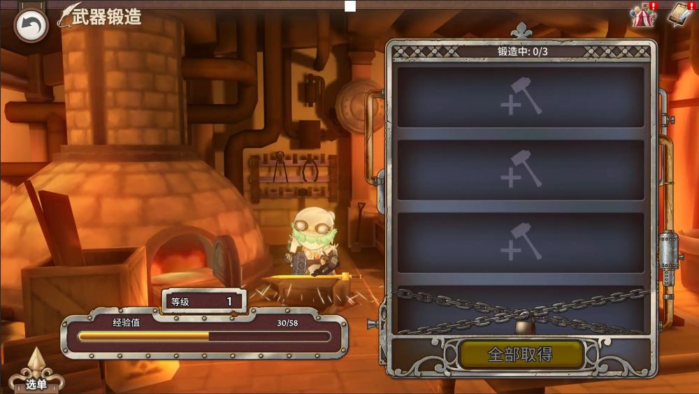 店主可以使用素材和金币,锻造出各种各样的武器。锻造武器会使用到一个锻造栏位。点击栏位后会进入锻造选择页面,确认锻造后,锻造栏会列出剩余的需要时间,当时间完成后便可以取得武器。