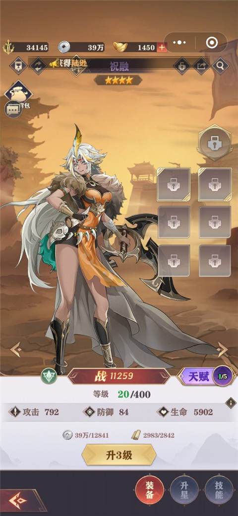 5、有了资源点击将灵可以进行升级,装备武器