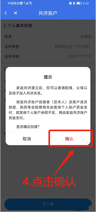 3、之后点“下一步”,系统会问你是不是真要创建家庭共济账户,确认一下。
