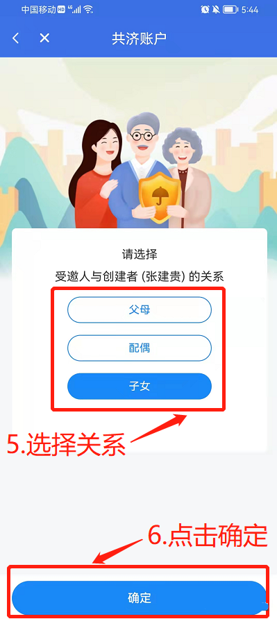 4、接着要选受邀人和创建者是什么关系,比如父子、母女之类的。