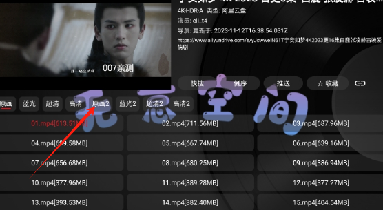 3、点开某个类型后,还能切换画质呢,有原画、蓝光、超清这些选项可以选。