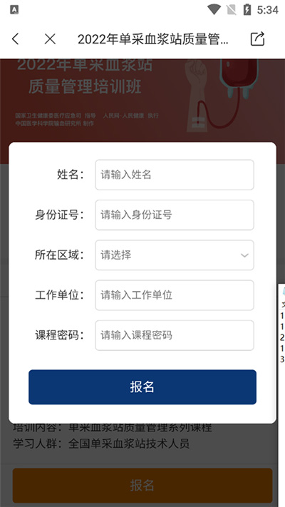 4、接着得把自己的姓名、身份证号、所在区域、工作单位,还有课程密码都填上。