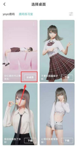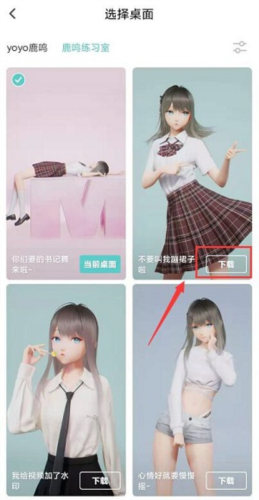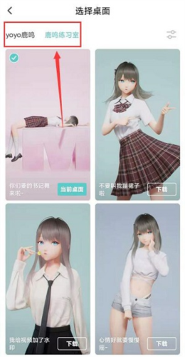 5、在这个界面里,直接点上面的“yoyo鹿鸣、鹿鸣练习室”就能切换主题啦。选好之后点一下下载,再把它设置成桌面就大功告成啦。