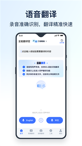 1、语音翻译实时高效,边说边译,对话交流如与母语者交谈般顺畅。2、全能翻译官免费版支持文档翻译,保留原格式,pdf、word 等文档翻译后排版依旧美观。