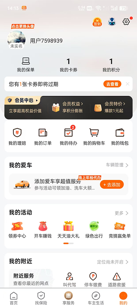 3、享服务这个界面得先把自己的车绑定好,之后就能享受一系列服务啦。