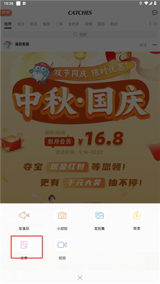渔获app官方版怎么发文章
