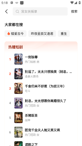 3、还提供一键搜索功能查询想看的短剧
