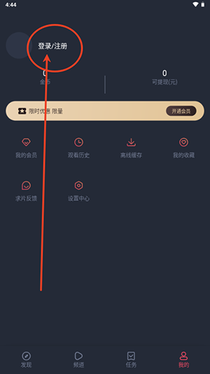 1、把app下载到手机上,安装好后打开它,找到“我的”那个选项点一下。