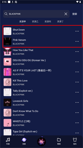 2、随后提供多种歌曲资源频道可切换找到你想听的歌曲