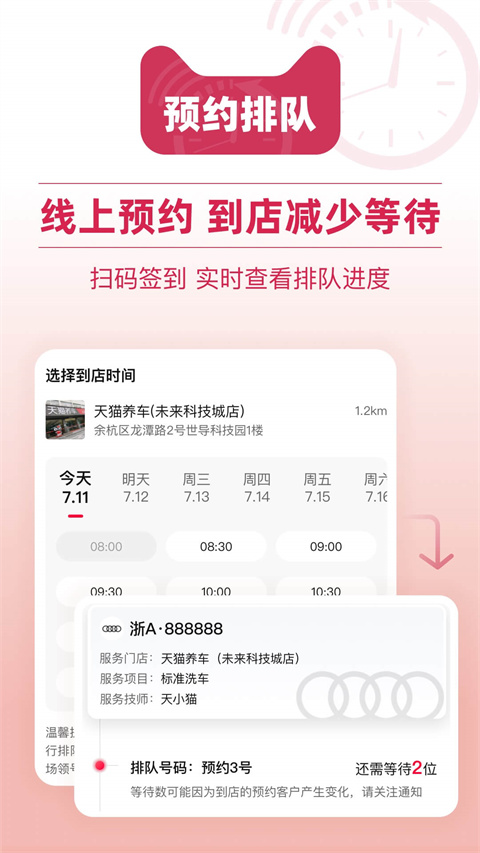 天猫养车app在服务品质上,它和众多优质的维修门店建立了合作关系,这些门店的技术团队经验丰富,能为用户提供专业可靠的服务。价格方面,它做到了公开透明,用户可以清楚地对比不同门店的定价,从而挑选出最适合自己的服务,用户可以根据自己的时间安排和实际需求,在app上预约服务,到店后扫码签到,还能随时在app上查看排队进度,整个过程非常省时省力。