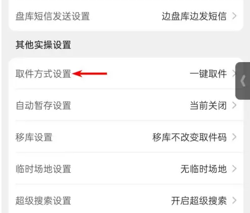 3、在操作设置页面里,再点一下“取件方式设置”。