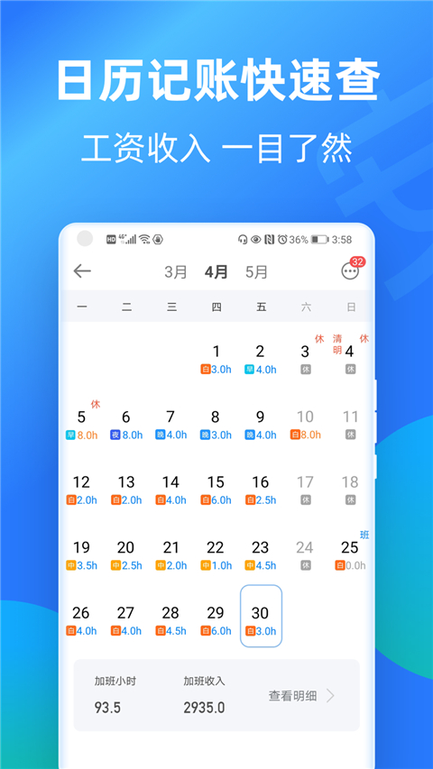 1、按月/按年生成工资趋势图,跳槽谈薪更有底气。2、加班时长统计,助你合理规划休息时间,避免过劳。