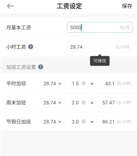 安心记加班app怎么修改基本工资
