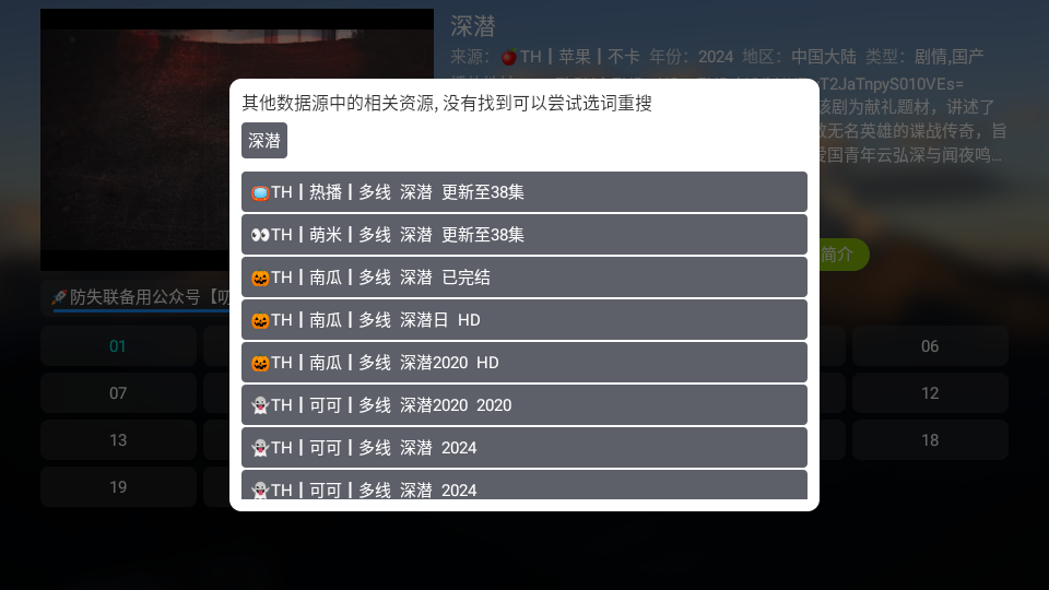 4、顶部搜索框支持“剧名+关键词”组合搜索,比如输入“深潜 第20集”或“谍战剧 2024”,瞬间定位你想看的片段。