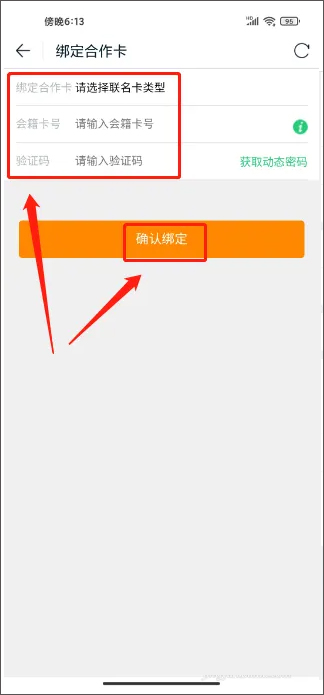 5、根据卡片所属机构选择对应类型,在指定输入框准确填写卡号,完成短信/邮箱验证码校验后,点击确认按钮完成绑定操作。