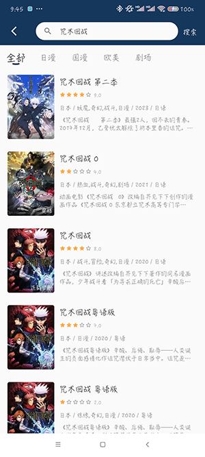 3、搜索完成后,系统将呈现与关键词匹配的全部相关动漫资源列表。