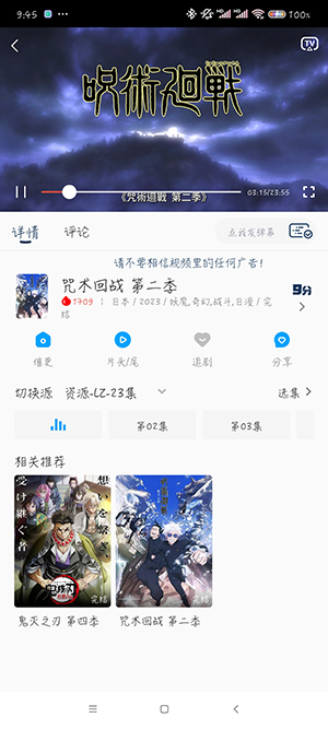 4、选定目标动漫并进入播放页面后,若遇播放卡顿,可手动切换播放线路。