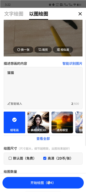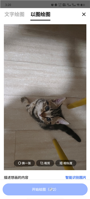 用户可上传参考图片作为创作基础,例如选择一张小猫照片作为模板。