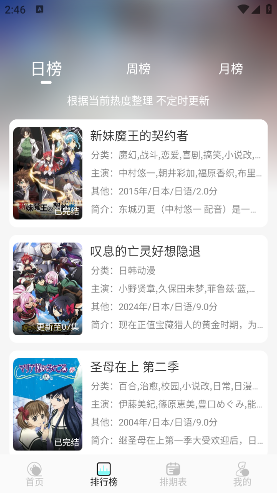 4、可视化展示新番更新时间表,支持订阅提醒,避免用户错过更新。