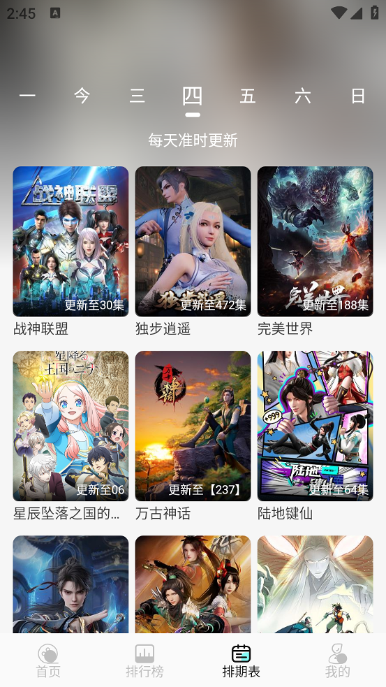 4、还有一个排期表板块,为用户提供每天动漫更新情况。